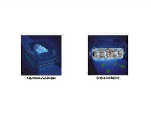 Robot puissant pour piscines jusqu’à 10 × 5 m. Aspiration cyclonique, 2 programmes, compatible tous revêtements.
